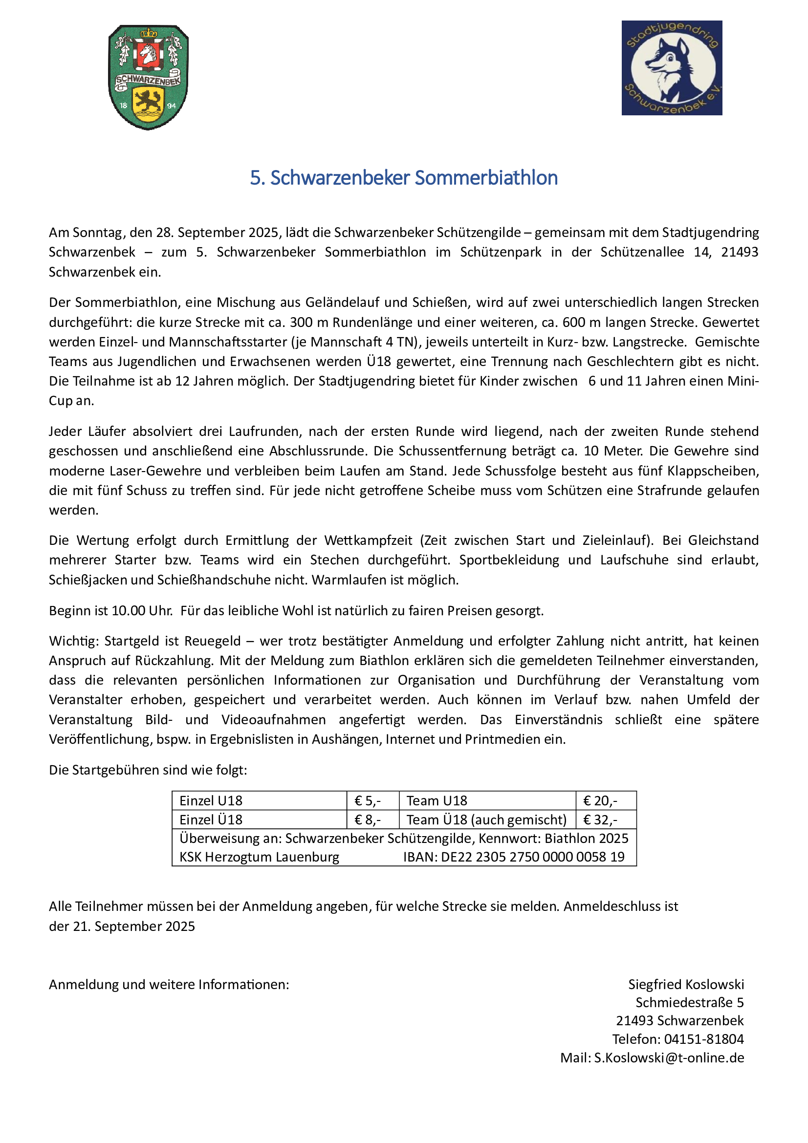 Wir veranstalten wieder einen Sommer Biathlon. Hier kann jeder mitmachen, der möchte.
